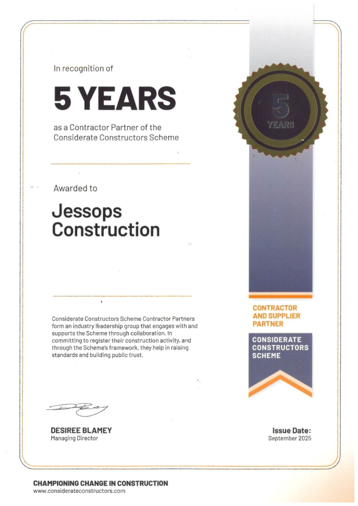 October 29, 2025/by @EmmaFieldhouseConsiderate Constructors Partnership 5 Year Award!
