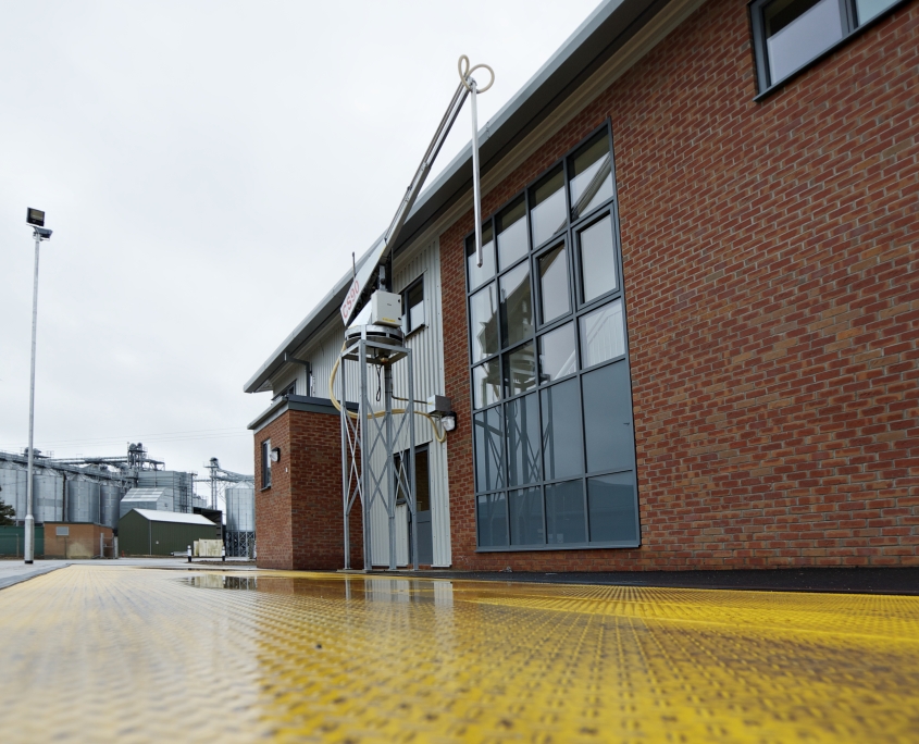 This included a further 20,000 tonnes of flat bed silo storage capacity, 2,000 tonnes of hopper bin storage, an additional intake hopper, a 3,750ft2 two storey office and laboratory facility, a 250ft2 control room projecting out of an existing building at first floor level, a 800ft2 workshop, two new trash buildings and concrete infill between the existing silos.